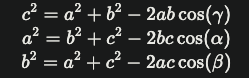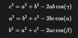 What are the mathematical formulas for the cosine rule?