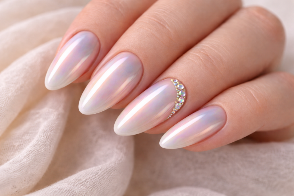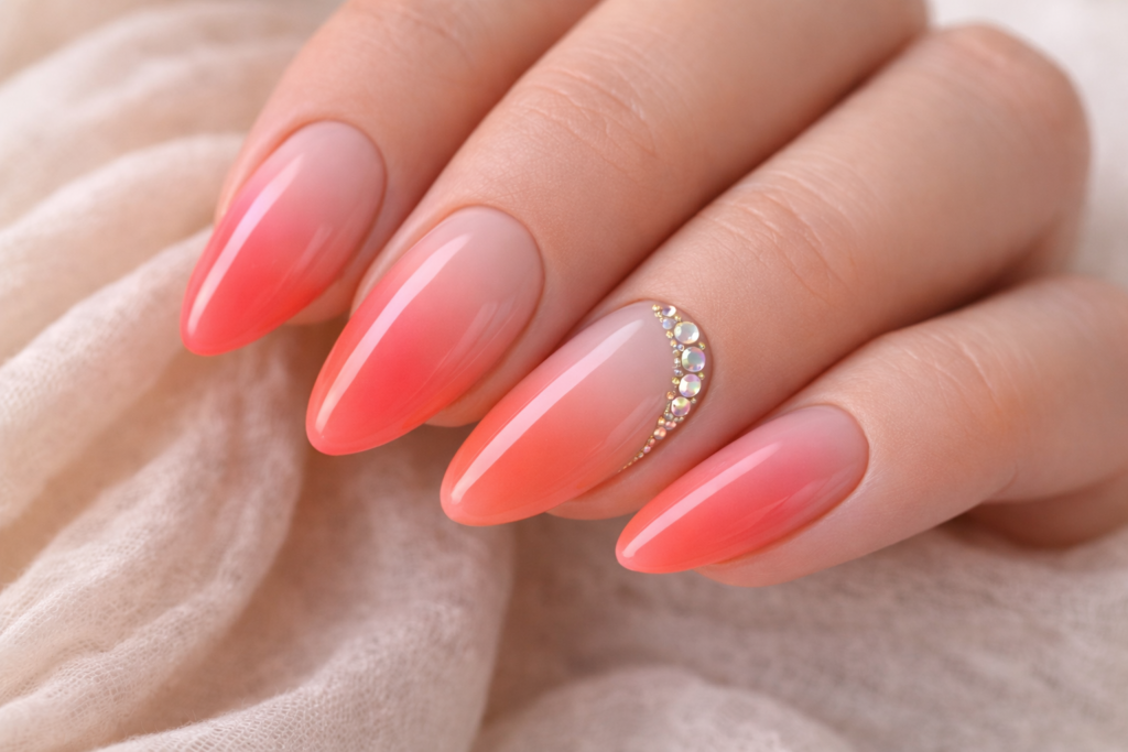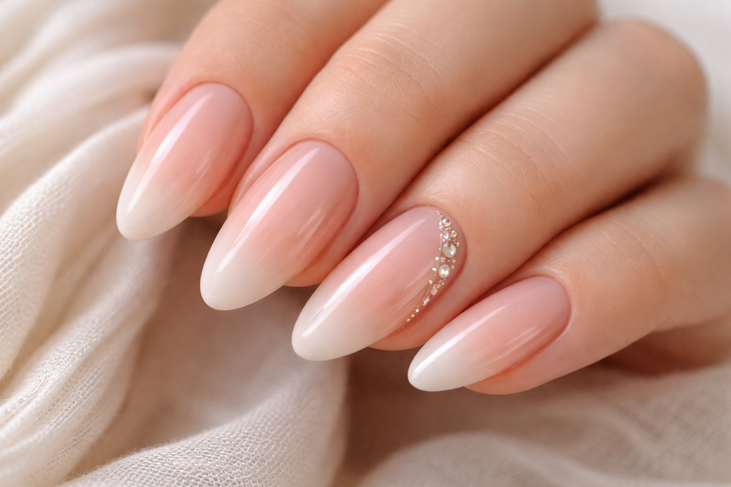 The “your-nails-but-better” manicure continues to top booking lists. Sheer peach tones create a soft, sun-kissed warmth, while milky pinks and creamy whites offer understated sophistication.