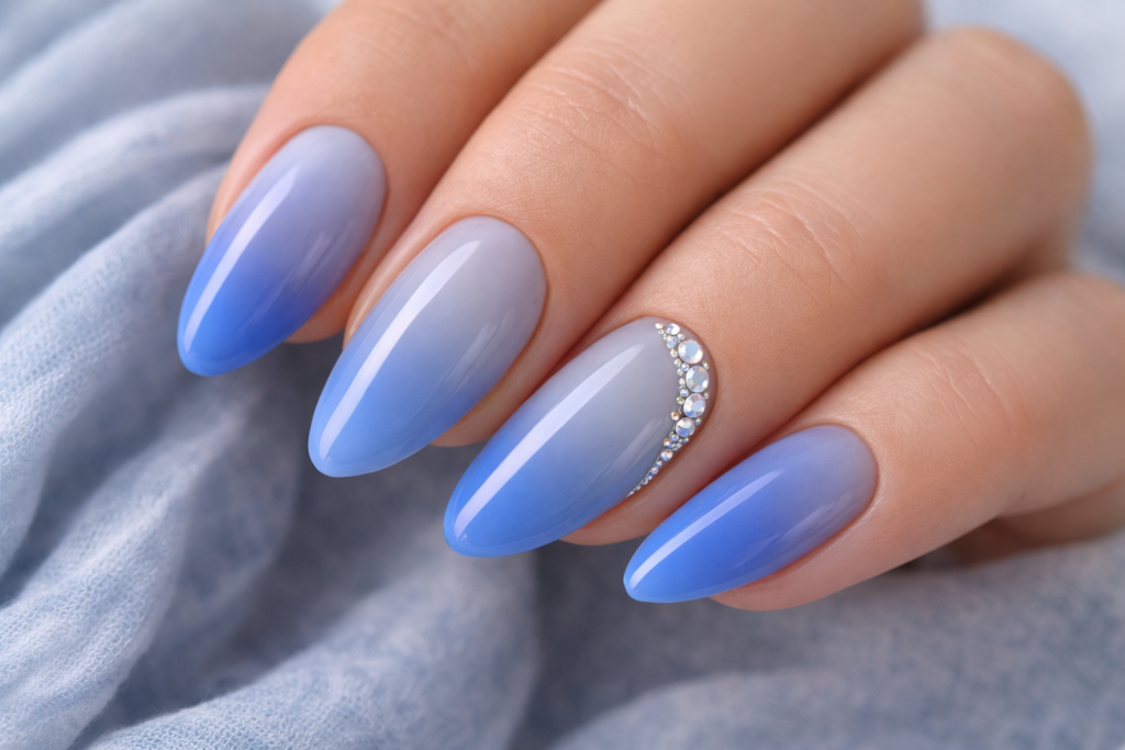 Salon insight: Many UK nail technicians note that clients are requesting “fresh but not neon” colours, and muted blues deliver exactly that.