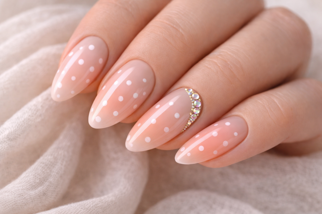 Heavy nail art is declining in favour of subtle, minimal details. Micro dots, fine lines and tiny accents feel playful but refined.